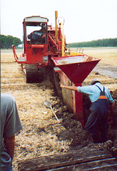 Die Dränrohre werden mit einer Dränfräse, oder auch evtl.