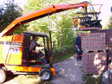 bis zum schwarz. Hinzu kommen viele verschiedene Arten der Verlegetechniken. Je nach Vorbereitung der Pflasterflächen können wir mit unserer Pflastermaschine über 1000qm pro Arbeitstag bewältigen. |