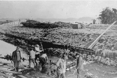1958 wurde dann die erste Dränagemaschine gekauft. Freunde und Bekannte